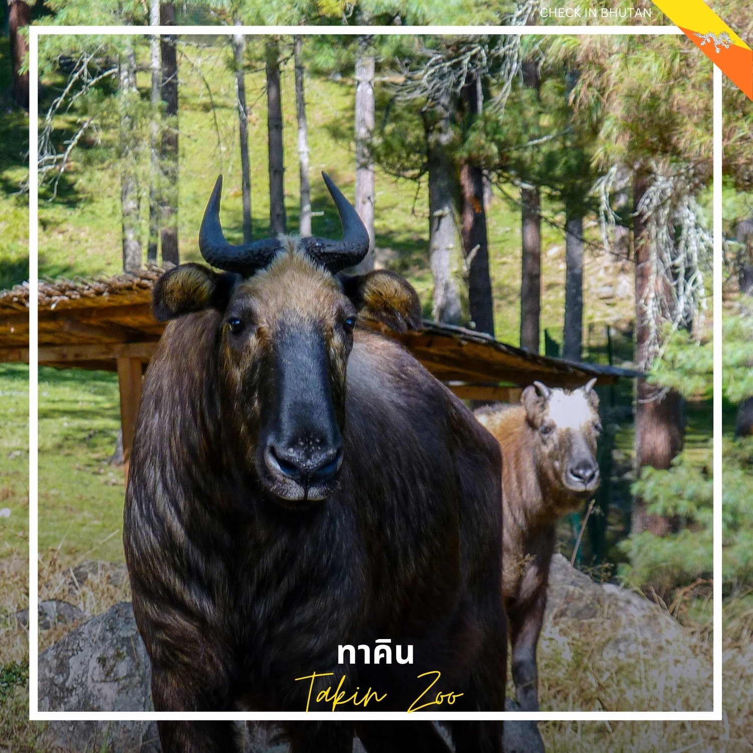 ทาคิน (Takin) เป็นสัตว์ประจำชาติของ ภูฏาน ที่มีลักษณะคล้ายแพะและวัวผสมกัน ตัวทาคินมีขนาดใหญ่และมีลักษณะเด่นที่หัวใหญ่และเขายาว ที่สำคัญมันเป็นสัตว์ที่มีความสามารถในการปีนเขาสูง และพบได้เฉพาะในเทือกเขาหิมาลัย ทาคินสามารถพบได้ในอุทยานแห่งชาติภูฏานและเป็นที่สนใจของนักท่องเที่ยวที่มาท่องเที่ยวในธรรมชาติของ ภูฏาน