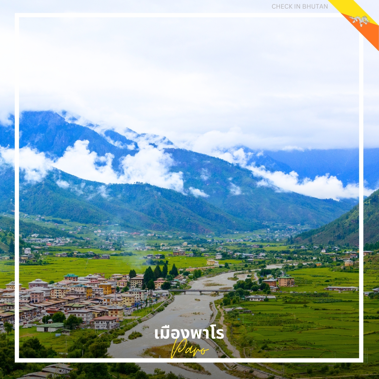 พาโร (Paro) คือเมืองเล็กๆ ใน ภูฏาน ที่ตั้งอยู่ในหุบเขาอันงดงาม ร่มรื่นไปด้วยธรรมชาติและวัฒนธรรมที่เต็มไปด้วยเสน่ห์ เป็นที่ตั้งของ ทัชินส์ลิง (Tiger's Nest Monastery) วัดสำคัญที่ตั้งอยู่บนหน้าผาสูงชัน เมืองนี้ยังมีอาคารสถาปัตยกรรมเก่าแก่และวิถีชีวิตท้องถิ่นที่เป็นเอกลักษณ์ เชิญชวนนักท่องเที่ยวมาสัมผัสความสงบและประวัติศาสตร์อันลึกซึ้งของ ภูฏาน