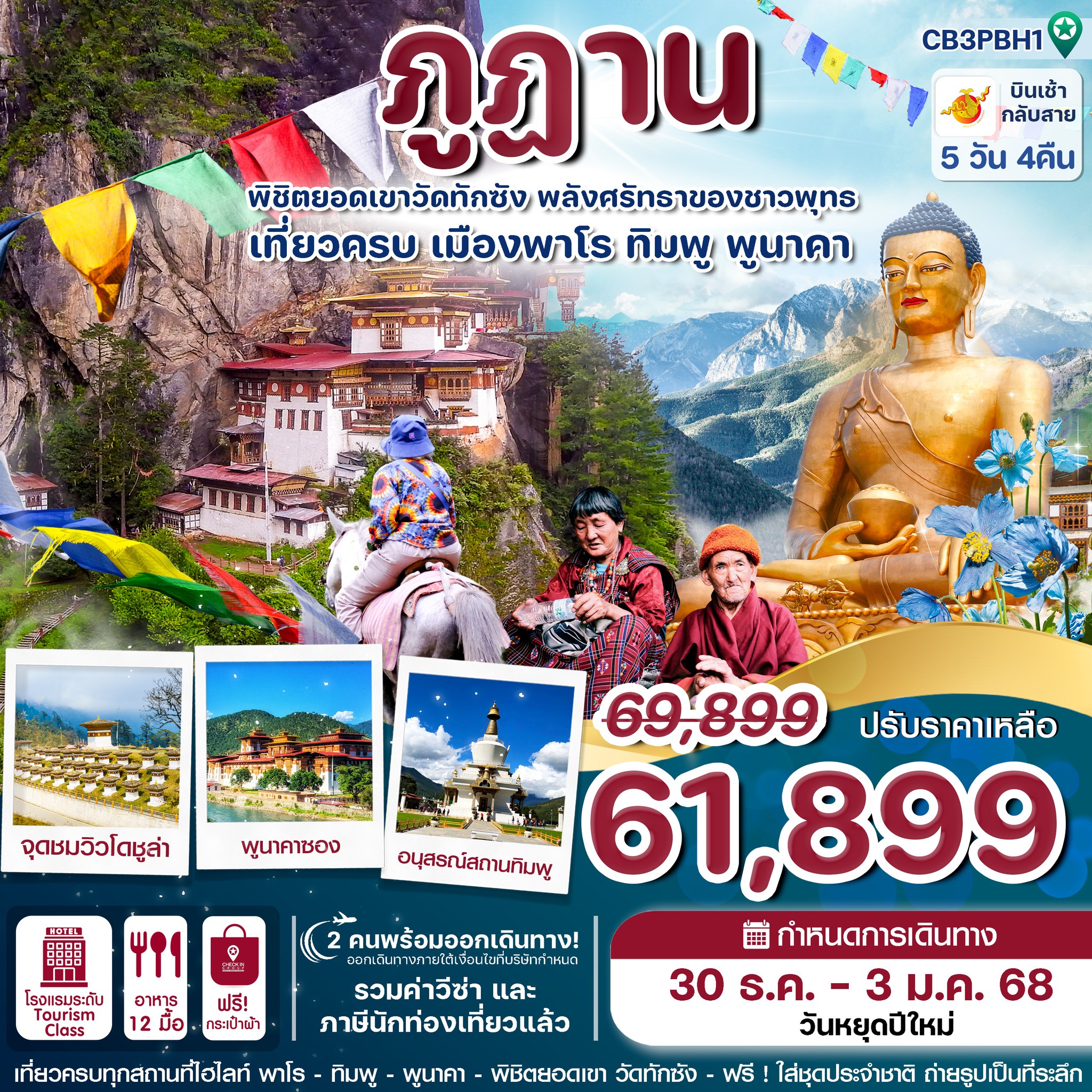 ภูฏาน (Bhutan) เป็นประเทศเล็กๆ ที่ตั้งอยู่ในหุบเขาของเทือกเขาหิมาลัย ระหว่างอินเดียและจีน เป็นหนึ่งในจุดหมายปลายทางที่น่าสนใจและมีเสน่ห์สำหรับนักท่องเที่ยวที่หลงใหลในธรรมชาติ วัฒนธรรมที่เป็นเอกลักษณ์ และความสงบเงียบที่หายากในโลกยุคใหม่ ภูฏาน ได้ชื่อว่าเป็น "ดินแดนแห่งความสุข" หรือ "Land of Happiness" เนื่องจากการวัดความเจริญรุ่งเรืองของประเทศผ่าน ดัชนีความสุขแห่งชาติ (Gross National Happiness - GNH) ซึ่งให้ความสำคัญกับความสุขและคุณภาพชีวิตของประชาชนมากกว่าการเติบโตทางเศรษฐกิจเพียงอย่างเดียว