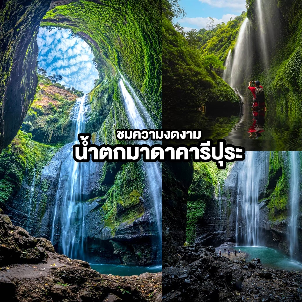 น้ำตกมาดาคารีปุระ (Madakaripura Waterfall) ตั้งอยู่ในอุทยานแห่งชาติ Bromo Tengger Semeru ในเขตชวาตะวันออก ประเทศอินโดนีเซีย เป็นหนึ่งในน้ำตกที่สูงที่สุดและสวยงามที่สุดในภูมิภาคนี้ น้ำตกไหลผ่านหน้าผาสูงชันล้อมรอบด้วยธรรมชาติสีเขียวขจี สายน้ำที่ไหลลงมาเหมือนม่านน้ำสร้างบรรยากาศที่สดชื่นและเงียบสงบ น้ำตกแห่งนี้ยังมีตำนานที่เกี่ยวข้องกับมหาบุรุษชาวชวา Gajah Mada ทำให้น้ำตกมาดาคารีปุระเป็นทั้งแหล่งท่องเที่ยวธรรมชาติและสถานที่เชิงประวัติศาสตร์