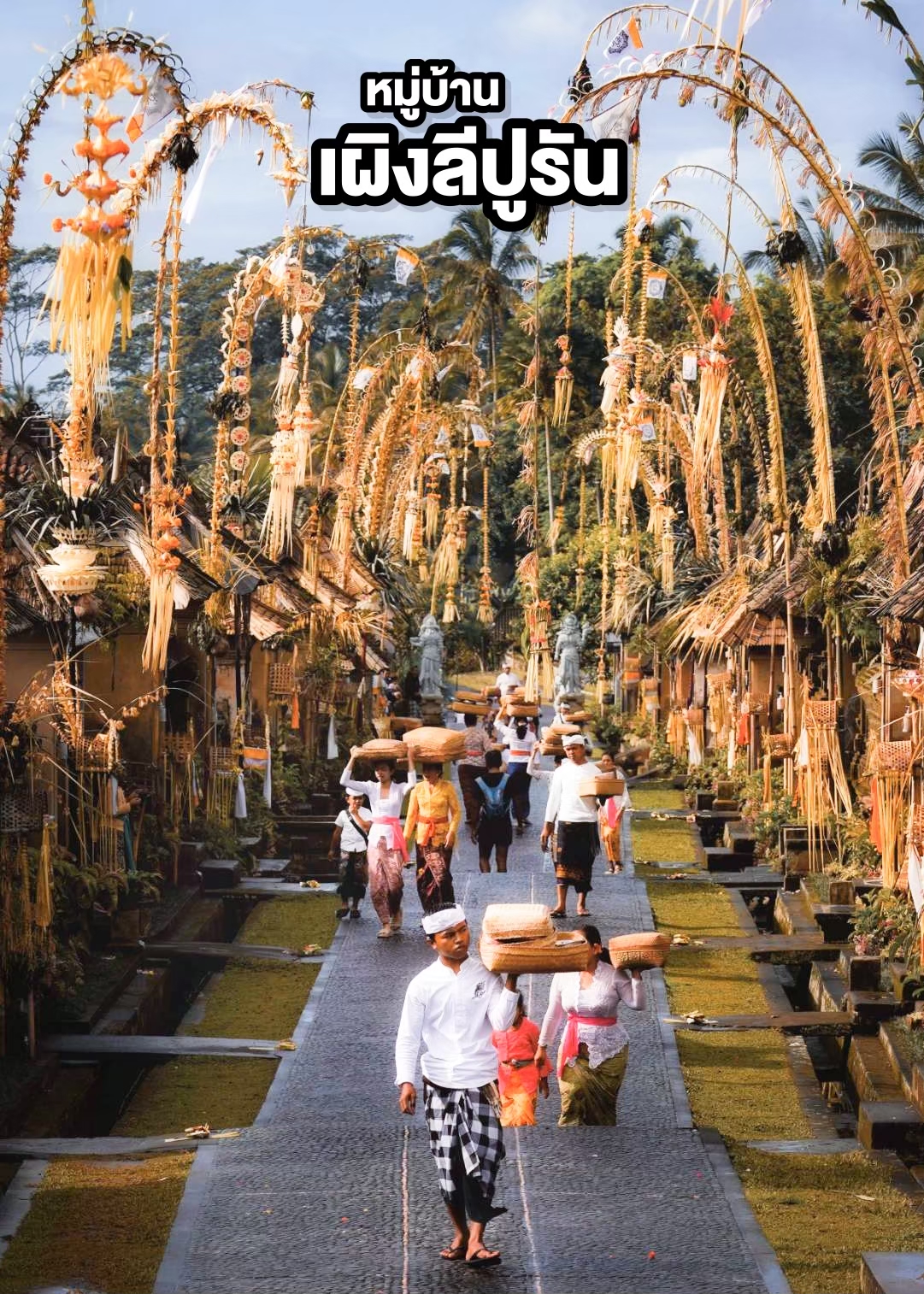 หมู่บ้านเผิงลีปูรัน (Penglipuran Village) เป็นหมู่บ้านโบราณที่มีความงดงามและเป็นเอกลักษณ์ในบาหลี หมู่บ้านนี้มีชื่อเสียงเรื่องการอนุรักษ์วิถีชีวิตและวัฒนธรรมดั้งเดิมของชาวบาหลี โครงสร้างบ้านเรือนถูกจัดวางอย่างเป็นระเบียบเรียบร้อย พร้อมทั้งมีสวนและถนนที่สะอาด หมู่บ้านเผิงลีปูรันยังเป็นสถานที่ท่องเที่ยวที่นักท่องเที่ยวสามารถเรียนรู้เกี่ยวกับวิถีชีวิตและประเพณีท้องถิ่น สัมผัสกับบรรยากาศที่สงบสุขและชุมชนที่เป็นมิตร