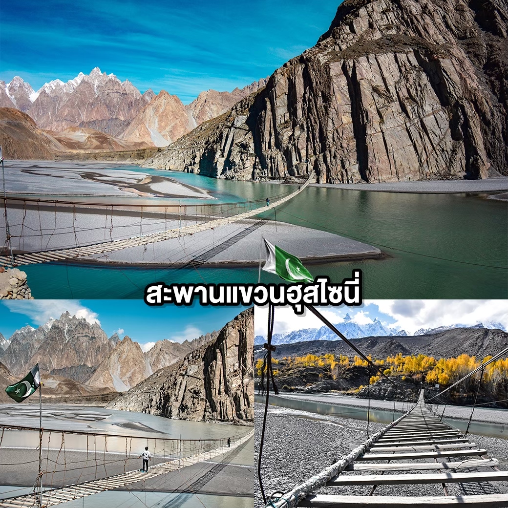 สะพานแขวนฮุดไซนี่ (Hussaini Hanging Bridge) ตั้งอยู่ในหมู่บ้านฮุดไซนี่ ในหุบเขาฮุนซา ปากีสถาน เป็นหนึ่งในสะพานแขวนที่น่าหวาดเสียวที่สุดในโลก สะพานนี้ทำจากไม้และเชือกที่ขึงข้ามแม่น้ำฮุนซา โดยมีช่องว่างกว้างระหว่างแผ่นไม้ ทำให้การเดินข้ามสะพานเต็มไปด้วยความตื่นเต้นและท้าทาย วิวทิวทัศน์ของแม่น้ำและภูเขาที่ล้อมรอบทำให้สะพานนี้ดึงดูดนักท่องเที่ยวที่รักการผจญภัย นอกจากนี้ สะพานฮุดไซนี่ยังเป็นสัญลักษณ์ของวิถีชีวิตในพื้นที่ห่างไกล ที่ผู้คนใช้สะพานนี้ในชีวิตประจำวัน