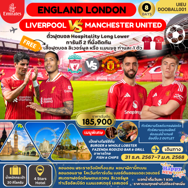 การชมฟุตบอลที่ เมืองแมนเชสเตอร์ เป็นประสบการณ์ที่ยอดเยี่ยมสำหรับแฟนบอล เนื่องจากเมืองนี้เป็นที่ตั้งของสองสโมสรฟุตบอลชั้นนำในพรีเมียร์ลีก ได้แก่ แมนเชสเตอร์ยูไนเต็ด (Manchester United F.C.) และ แมนเชสเตอร์ซิตี้ (Manchester City F.C.)