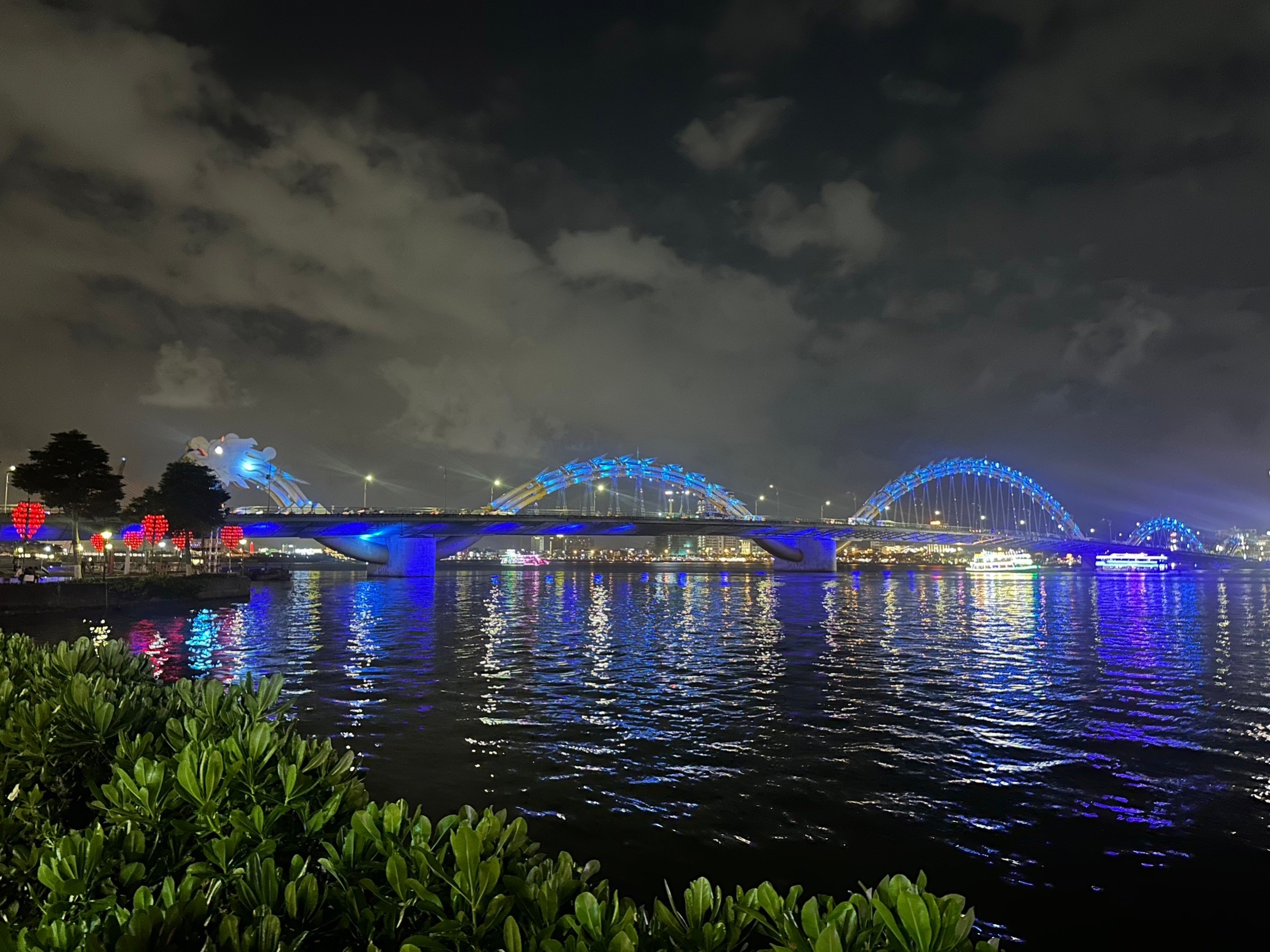 แสงสีสวยงามยามค่ำคืน: สะพานประดับด้วยไฟ LED ที่สว่างไสว ทำให้บรรยากาศยามค่ำคืนของเมืองดานังดูมีชีวิตชีวาและน่าประทับใจ