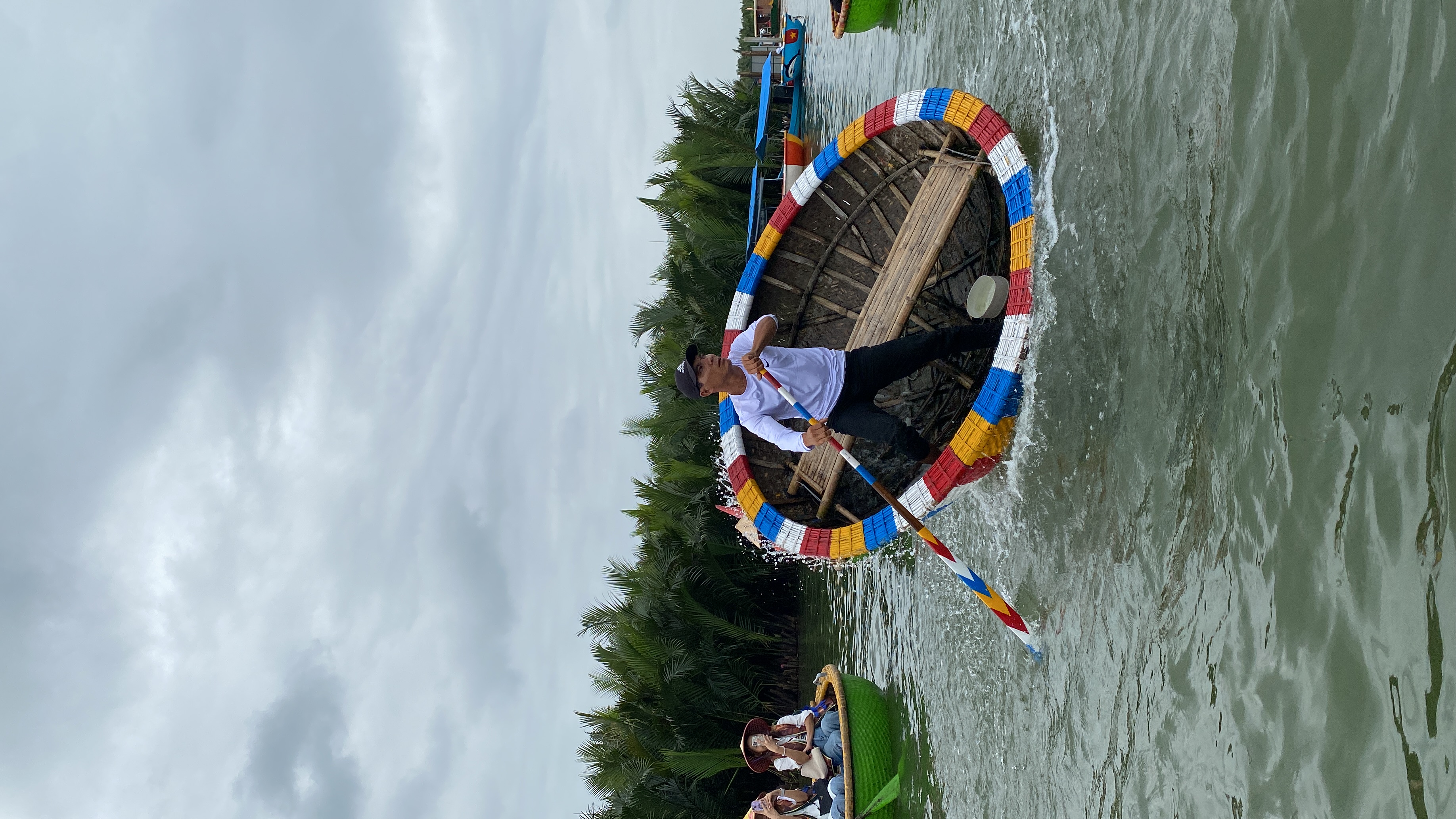 เรือกระด้ง ทรงกลมโบราณพาคุณล่องผ่านทุ่งหญ้าหรือป่าชายเลนในเมืองโฮอัน สามารถสัมผัสวิถีชีวิตท้องถิ่นและชมธรรมชาติอย่างใกล้ชิด