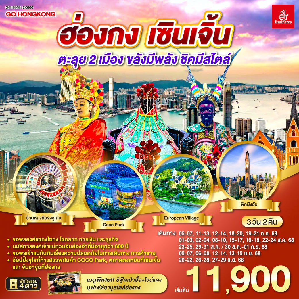 เที่ยวฮ่องกง ขอพรเจ้าแม่กวนอิม 3 เมือง ฮ่องกง จูไห่ มาเก๊า เดินทางเที่ยว 3 เมือง ข้ามสะพานที่ยาวที่สุดในโลก HZMB ถ่ายรูปสวยเก๋สไตล์ยุโรป เดอะปารีเซียน เดอะเวเนเชี่ยน ที่สุดของความปัง ความเฮง และความสำเร็จ ไหว้ขอพรที่วัดแชกงหมิว ฮ่องกง ช้อปปิ้งสินค้าจีนตลาดใต้ดินกงเป่ย และ สินค้าแบรนด์เนมย่านถนนนาธาน แถมฟรีถุงผ้าลดโลกร้อนทุกที่นั่ง